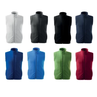 Kamizelka polarowa unisex o klasycznym kroju z dwoma skośnie wszytymi kieszeniami na zamek błyskawiczny. Dolny ściągacz można regulować za pomocą elestycznego sznurka. Zewnętrzena strona materiału antipiling.